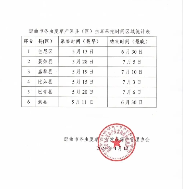冬蟲夏草是在特殊氣候、特殊地理環(huán)境下發(fā)育形成的菌蟲復(fù)合體,那曲冬蟲夏草生長在平均海拔4800m左右的高山上,因其生長區(qū)域海拔高,冬蟲夏草采挖季節(jié)相比其他產(chǎn)區(qū)采集時間較晚,為維護“那曲冬蟲夏草”品牌聲譽,保護產(chǎn)區(qū)農(nóng)牧民、經(jīng)營者和廣大消費者的合法權(quán)益,促進那曲冬蟲夏草產(chǎn)業(yè)高質(zhì)量發(fā)展,現(xiàn)向社會告知2024年那曲市各縣(區(qū))冬蟲夏草采挖具體時間,請廣大消費者謹記在這之前聲稱“新鮮那曲冬蟲夏草”的均屬冒充“那曲冬蟲夏草”行為,請廣大消費者不要上當(dāng)。同時,我協(xié)會倡議所有蟲草行業(yè)從業(yè)人員堅決杜絕人工繁育蟲草冒充“那曲冬蟲夏草”欺騙消費者的違法行為,堅決杜絕以假亂真、以次充好的不法行為。